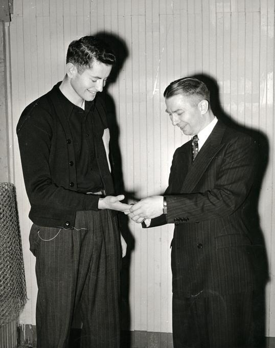 Howard Andrew “Hobby” Hobson was a basketball pioneer and innovator who led the University of Oregon's Tall Firs to the 1939 NCAA Championship. Creative and analytical, he found success as a coach at high schools, small colleges, and universities and served on the NCAA Rules Committee and the U.S. Olympic Basketball Committee. His legacy as a basketball strategist and innovator was cemented in 1965 when he was enshrined into the Naismith Memorial Basketball Hall of Fame. He was inducted into the Oregon Sports Hall of Fame in 1980.