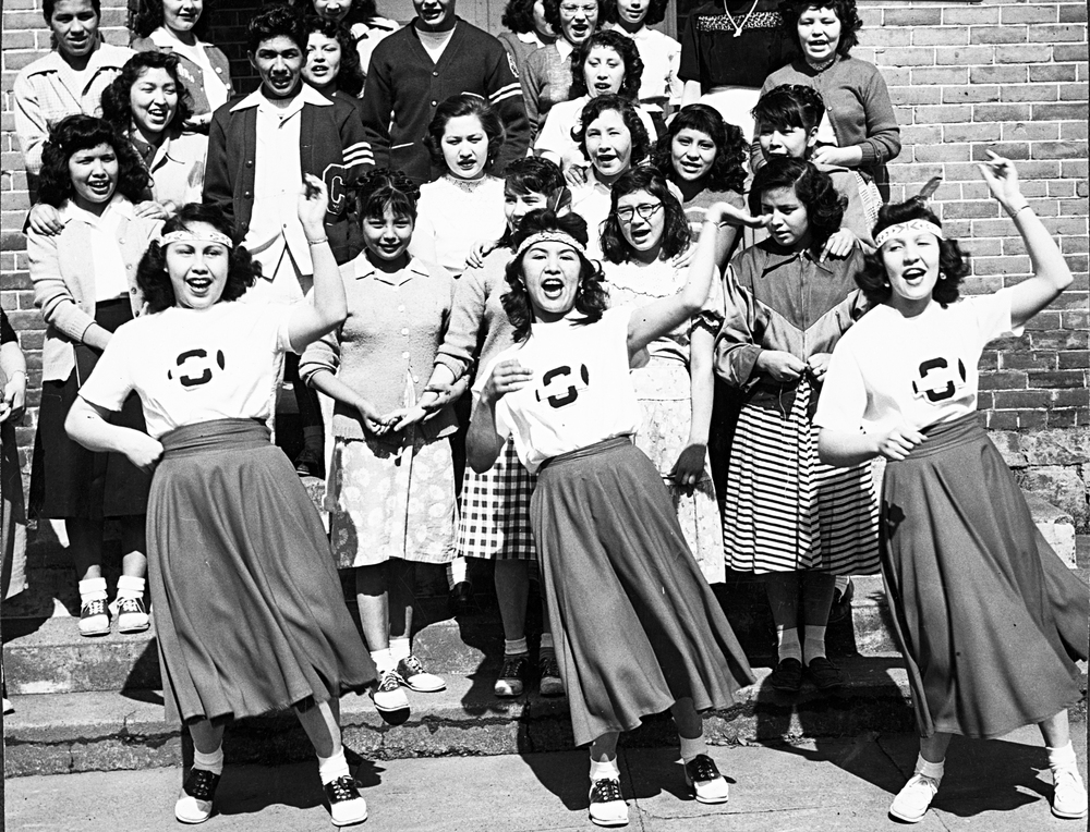 Cheerleaders at the Chemawa Indian School.