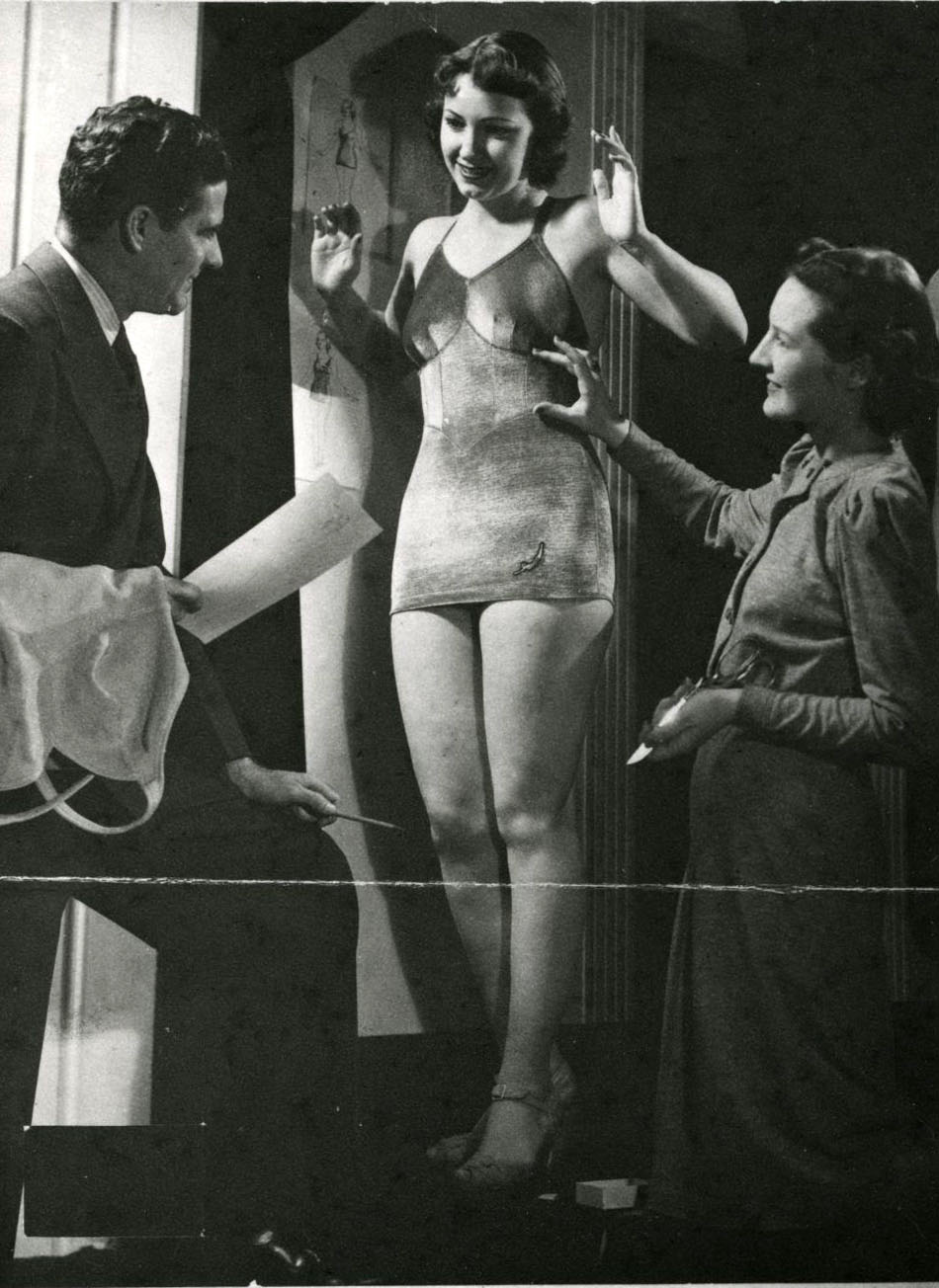 Jantzen designers work with a live model, 1940.