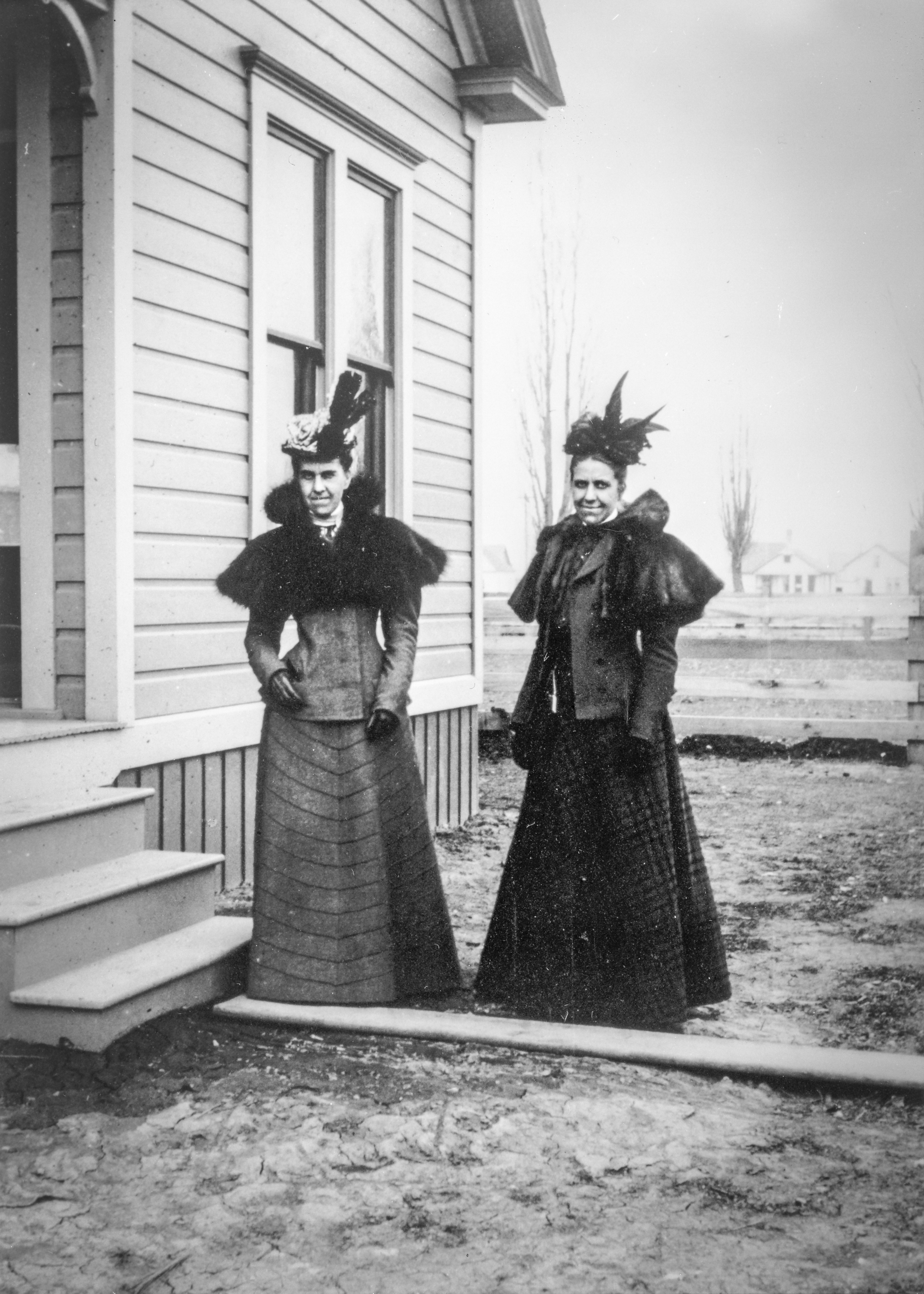 The dressmaking business of M & A Shogren was Portland’s haute couture house during the late nineteenth and early twentieth centuries. Sisters May and Ann Shogren opened their shop in the mid-1890s, where for over twenty years they operated Oregon’s most significant fashion house. At a time when it was unusual for women to own and manage businesses by themselves, they created dresses of exceptional quality and style for wealthy women in Oregon and on the West Coast. Independent and adventurous in both their business and personal lives, the sisters climbed Mount Hood in 1895 and were charter members of the Mazamas mountaineering club.