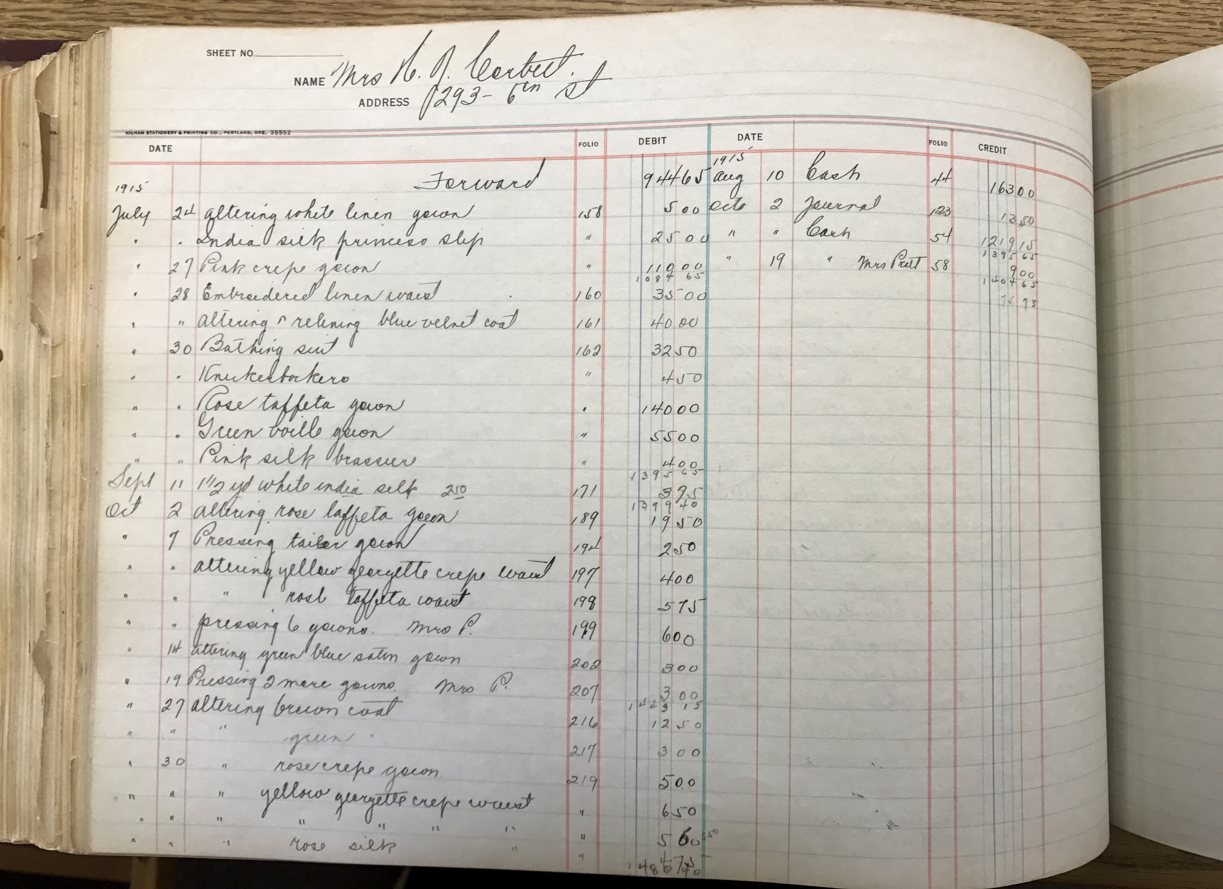 Shogren Dressmakers and Ladies Tailoring, 1899-1920, Mss 2701, Oregon Historical Society Research Library, Portland.