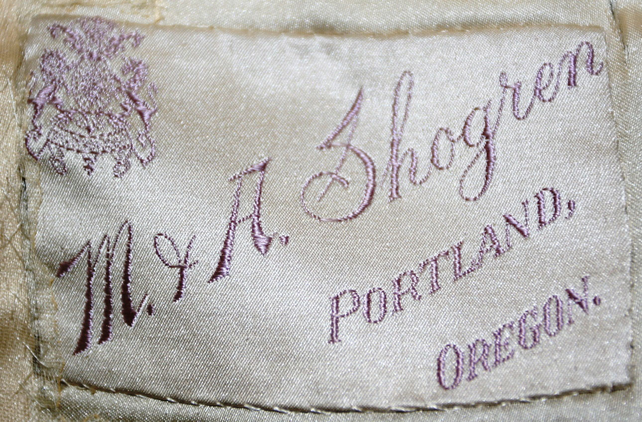 The daughters of Swedish immigrants, May and Ann Shogren grew up in Portland with their five other siblings. May was born in 1861, and Ann was born in 1868. May was apprenticed to local tailor Henry Litt, where she advanced to the position of forelady. She left Litt in 1889 to start her own dressmaking business. By 1893, Ann had joined her as a dressmaker, and within three years they were listed in the Portland City Directory as M & A Shogren. As their business developed, May handled most of the designs and clients, and Ann took care of the administration. They produced gowns with a level of craftsmanship beyond anything else available in the region.