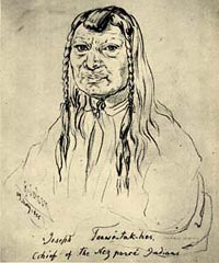 Chief Five Crows, sketch by Gustavus Sohon, 1855.