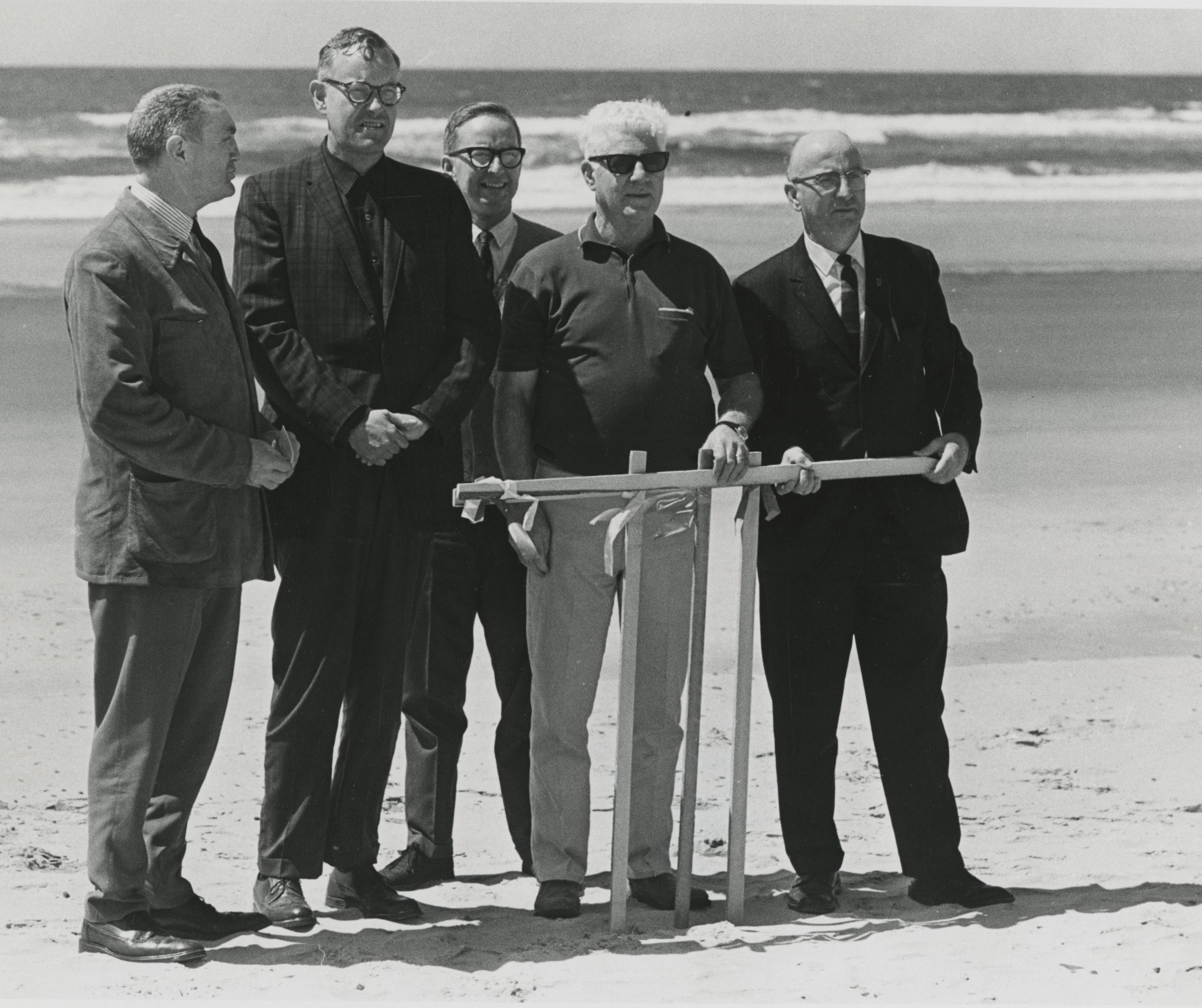 On May 13, 1967, McCall took a group of Oregon State University scientists—along with some state representatives and members of the press—to the coast. They confirmed that the 16-foot level he supported was approximately the level of the vegetation line. The arrival of a helicopter provided the ad-libbing governor with even more dramatic photo ops, including a stop in Cannon Beach, where photographers captured him glaring at the driftwood barriers of the Surfsand Motel.