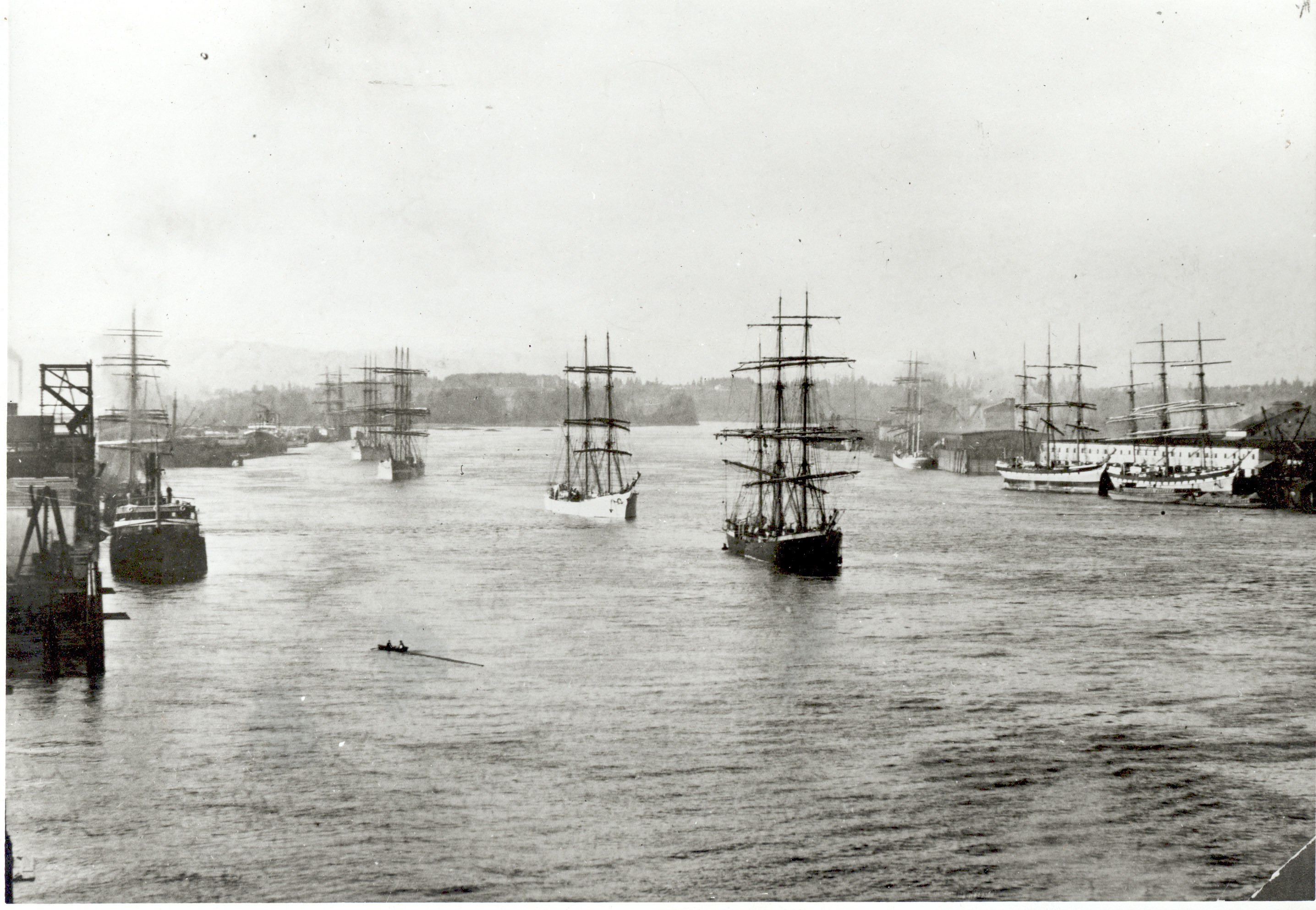 During its first three decades, Portland depended on trade by water. Its first substantial growth came when the California Gold Rush created a huge market for Oregon wheat and lumber, much of it shipped from Portland by river and ocean to San Francisco. Willamette River steamboats brought farm products from the state’s agricultural heartland, while steamer links connected by portage railroads on the Columbia River allowed Portland merchants to supply miners in Idaho and Montana. The Oregon Steam Navigation Company, which had consolidated and monopolized the Columbia River trade by 1860, was the basis for several sizable fortunes.