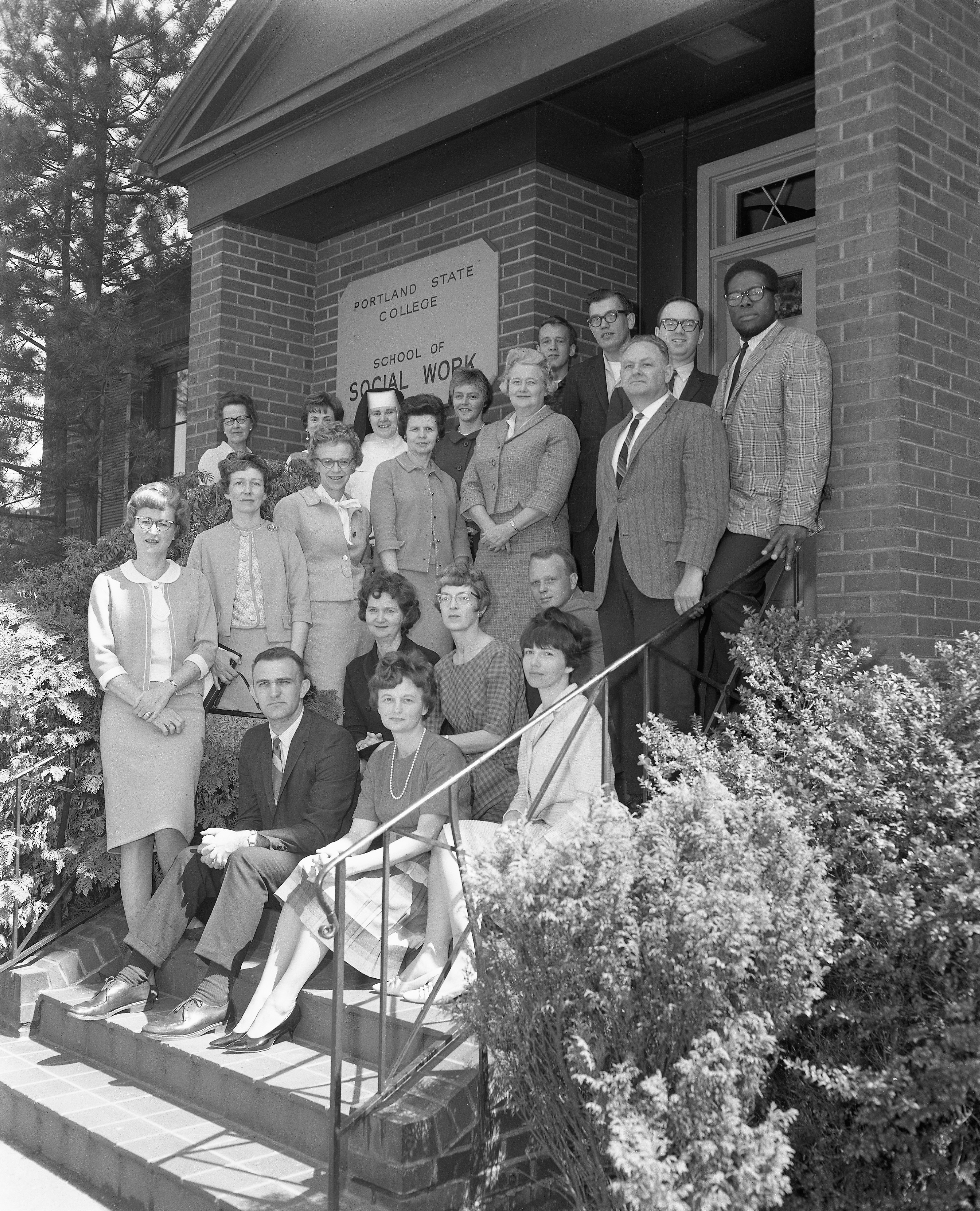 In the fall of 1962, under the leadership of President Branford Millar (1959-1968), social work became the first master’s-level graduate degree offered at the college. A graduate program in education was authorized in 1958 but remained unfunded until its first class in September 1963. An additional eight master’s degrees in liberal arts and sciences were available in 1965 to the college’s 8,700 students. Portland State students made national headlines in 1965 after its College Bowl quiz show team went undefeated and broke scoring records against more prominent institutions.