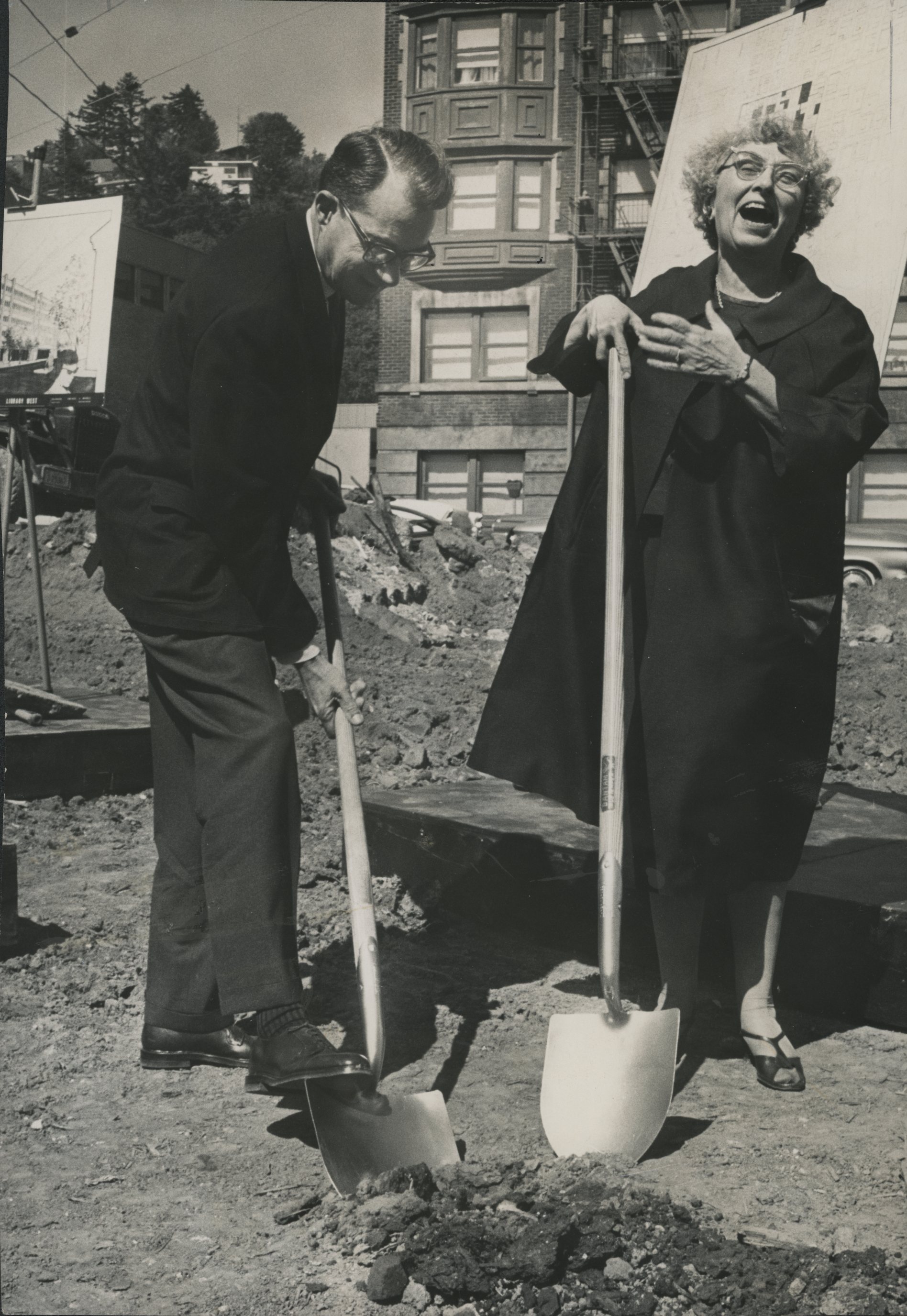 Branford Millar and librarian Jean Black at the PSU library groundbreaking, May 18, 1966.