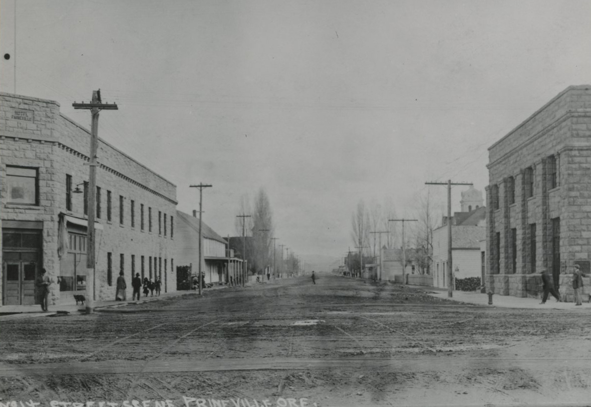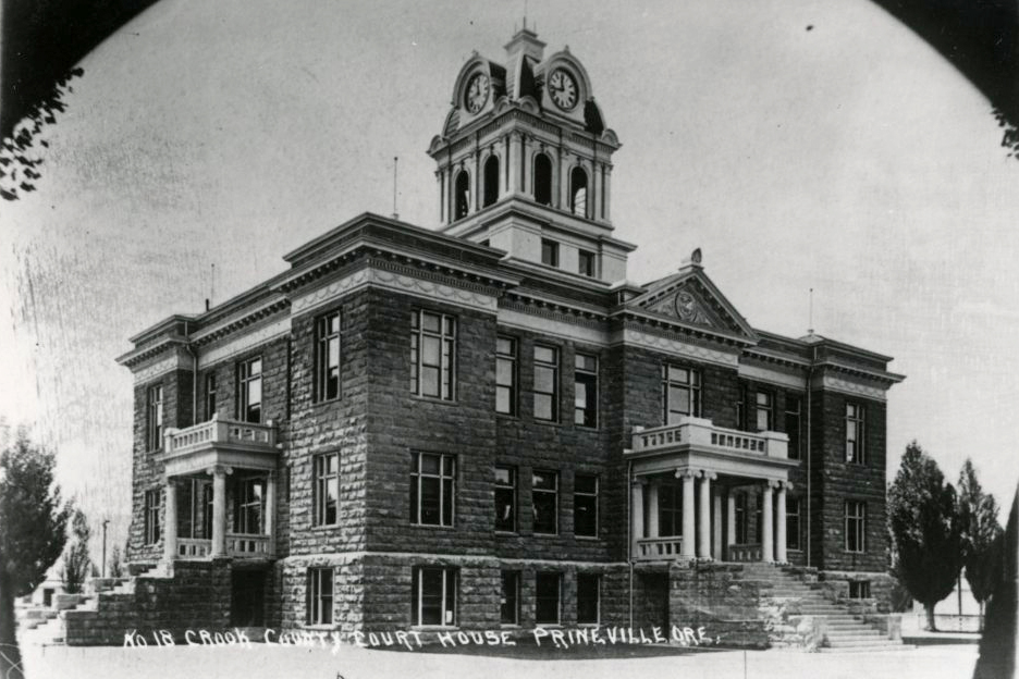 In October 1882, when the southern part of Wasco County broke off to form Crook County, the Oregon legislature chose Prineville as the county seat, a decision confirmed by voters in the 1884 election. The first courthouse in town was built in 1885; but the wooden structure was deemed too unsafe to hold the county’s records, and a large stone and brick structure was erected in 1909, which still stands today. By 1910, the population of the town had grown to 1,042.