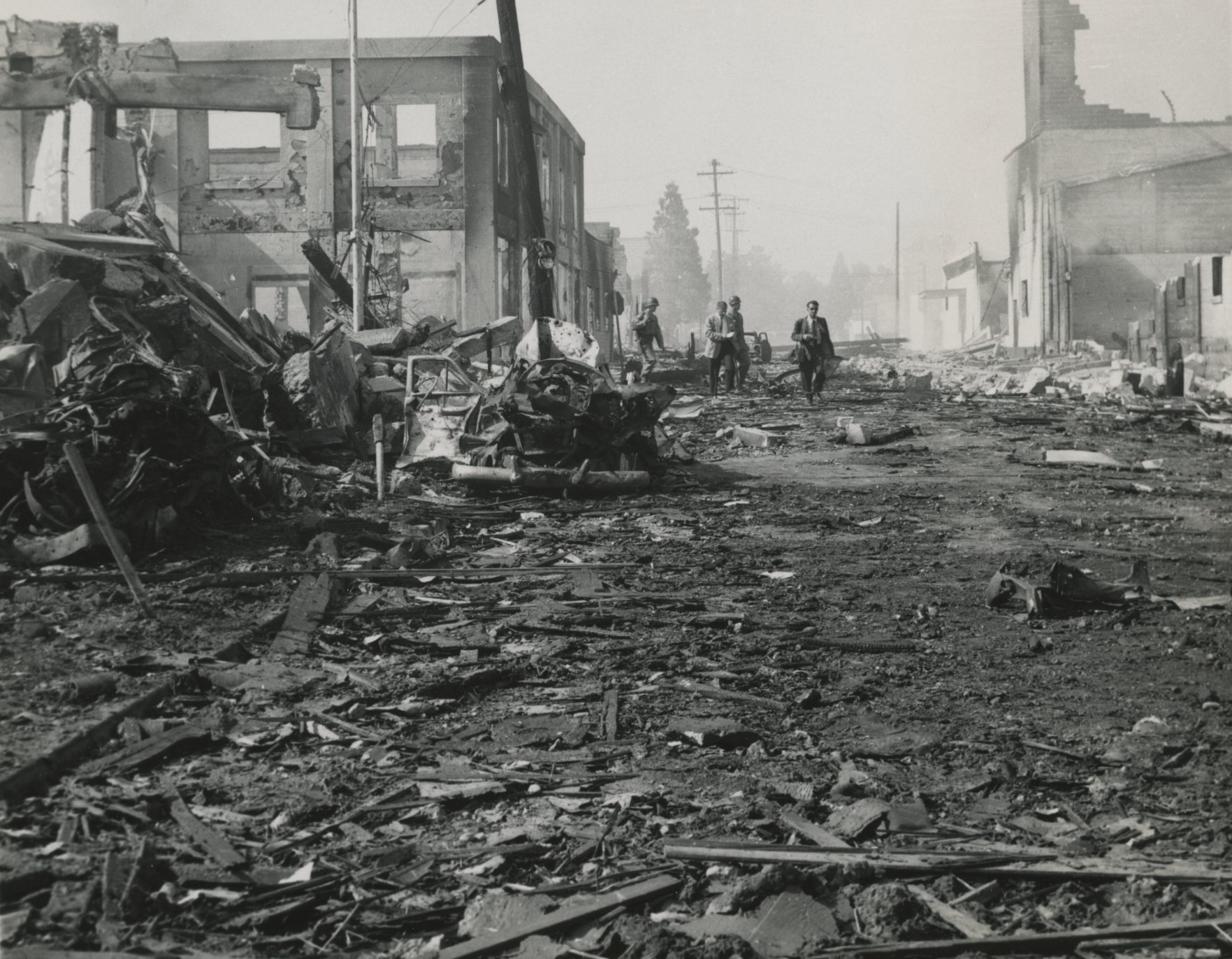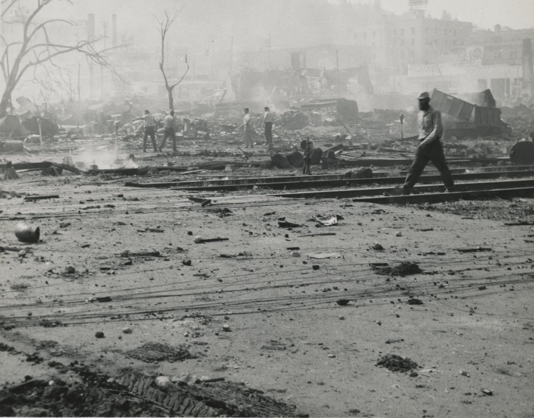 At 1:14 in the morning, Rutherford, awakened by the sirens and flames, rushed towards his truck. The truck's load exploded when he was a half-block away, blowing him back and knocking him unconscious. Among the dead were a fireman, policeman, residents of nearby apartment buildings (including a four-year-old girl), and several passersby and onlookers.