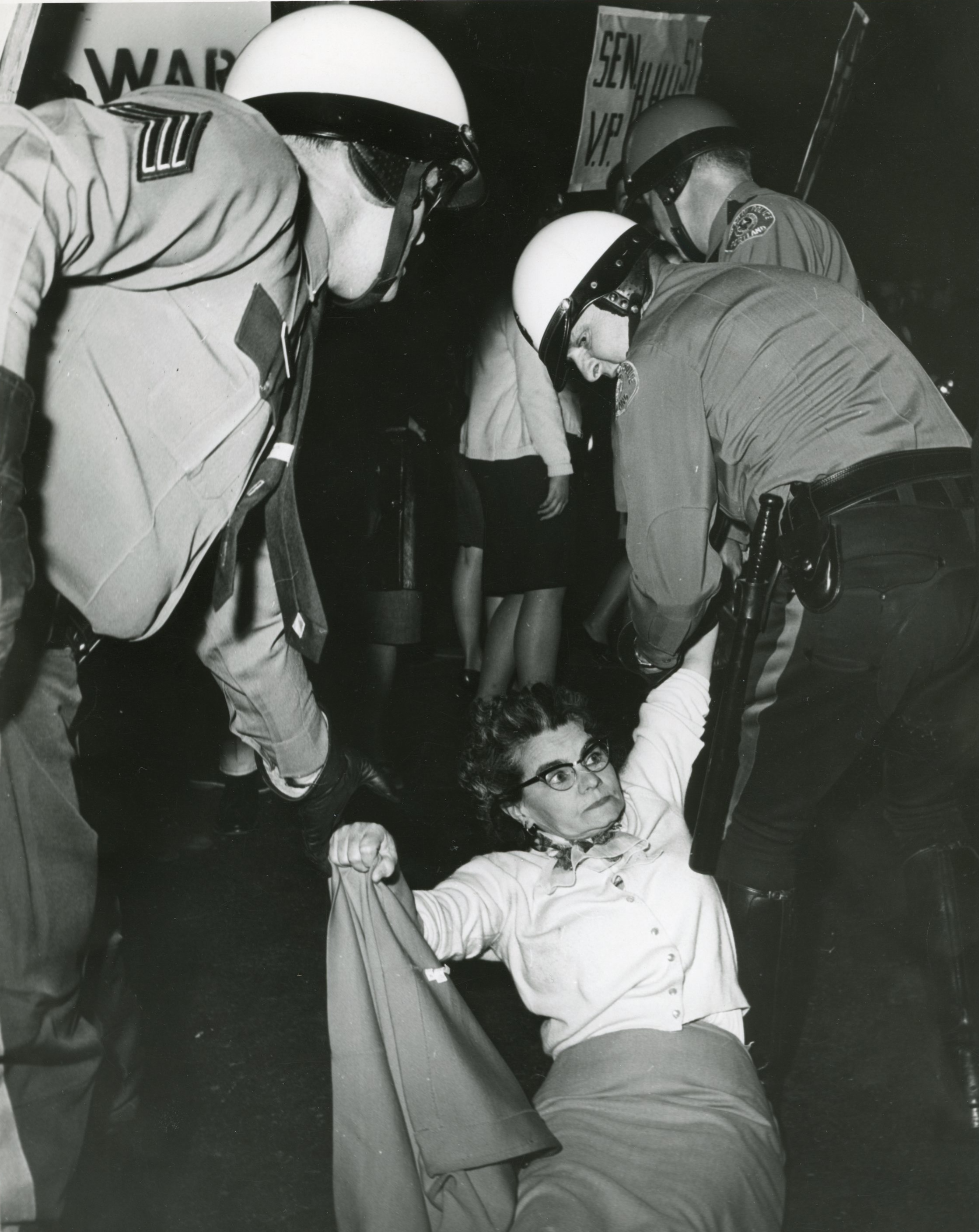 Julia Ruuttila being arrested at a peace march in Portland, 1966.