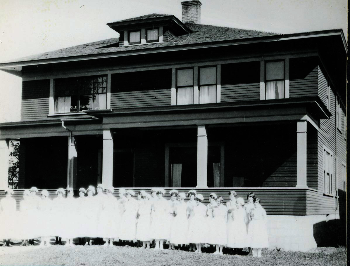 Nurses in front of their home at the Pacific Christian Hospital, Eugene, 1926.