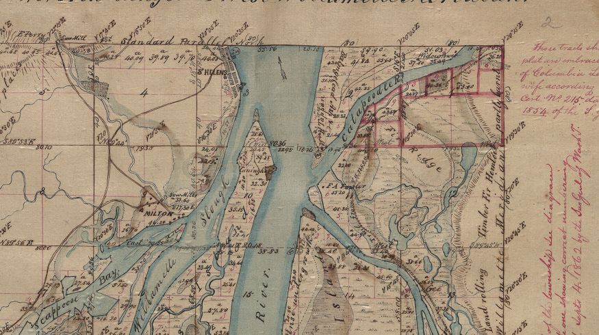 St. Helens is a Columbia River town located eighty-six river miles from the Pacific Ocean. The Columbia County seat since 1857, the city is at the confluence of the river and Multnomah Channel, less than three hundred yards from the northern tip of Sauvie Island. Both Highway 30 and a railroad freight line between Portland and Astoria dissect the town a mile and a half from the river. In the mid-1800s, the location attracted those who sought potential ports along the lower Columbia and the Willamette River.