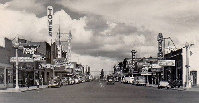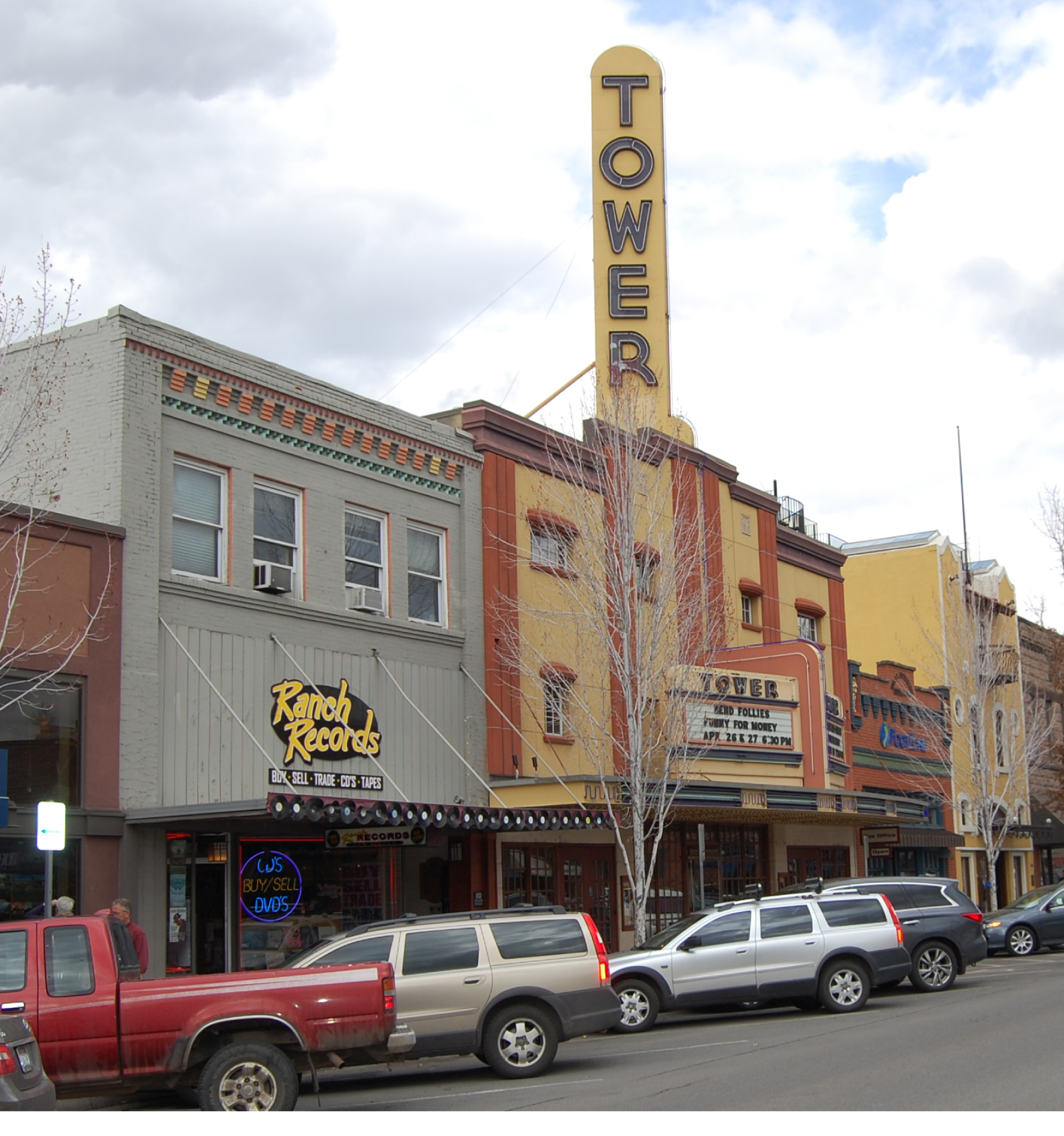 The Tower Theatre is Bend’s most colorful and iconic landmark. Since the theater’s opening on March 6, 1940, residents have heralded the building’s Streamline Moderne design, especially the four-story column above the marquee, where “Tower” is spelled out in large neon letters. Following the Depression, many people saw the building as a symbol of their resilience, collective strength, and optimism.
