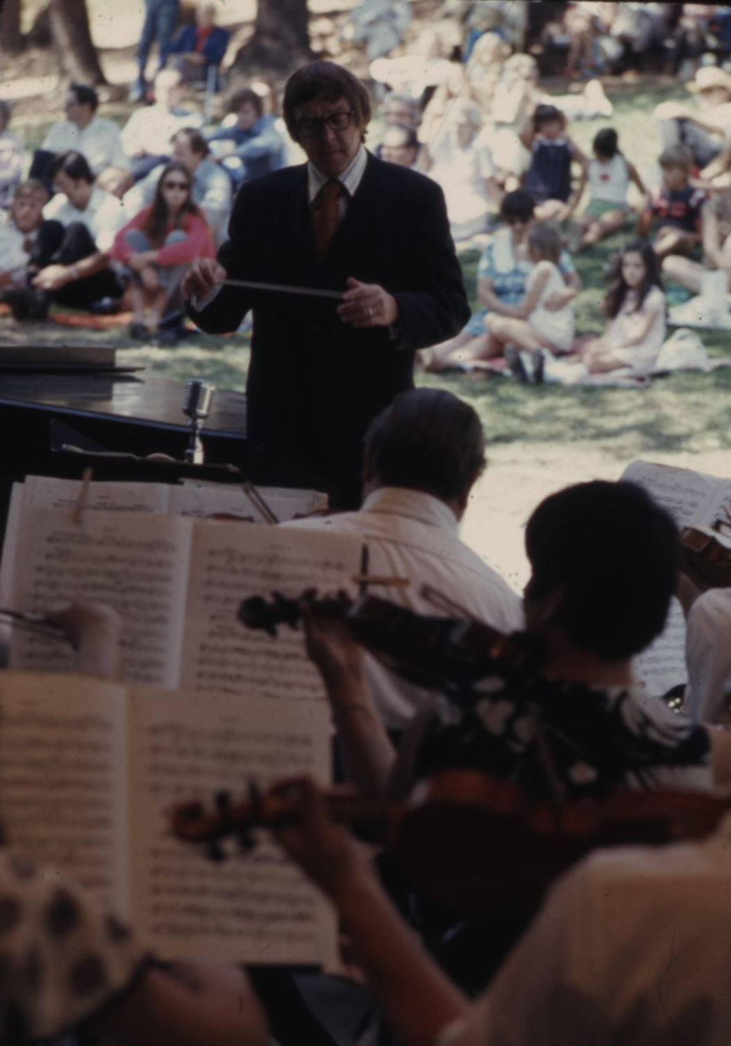 John Trudeau conducting at a Britt Festival concert, 1973.