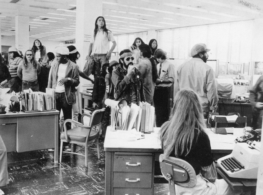 Protesting members of AIM take over the BPA office in Portland, 1975.